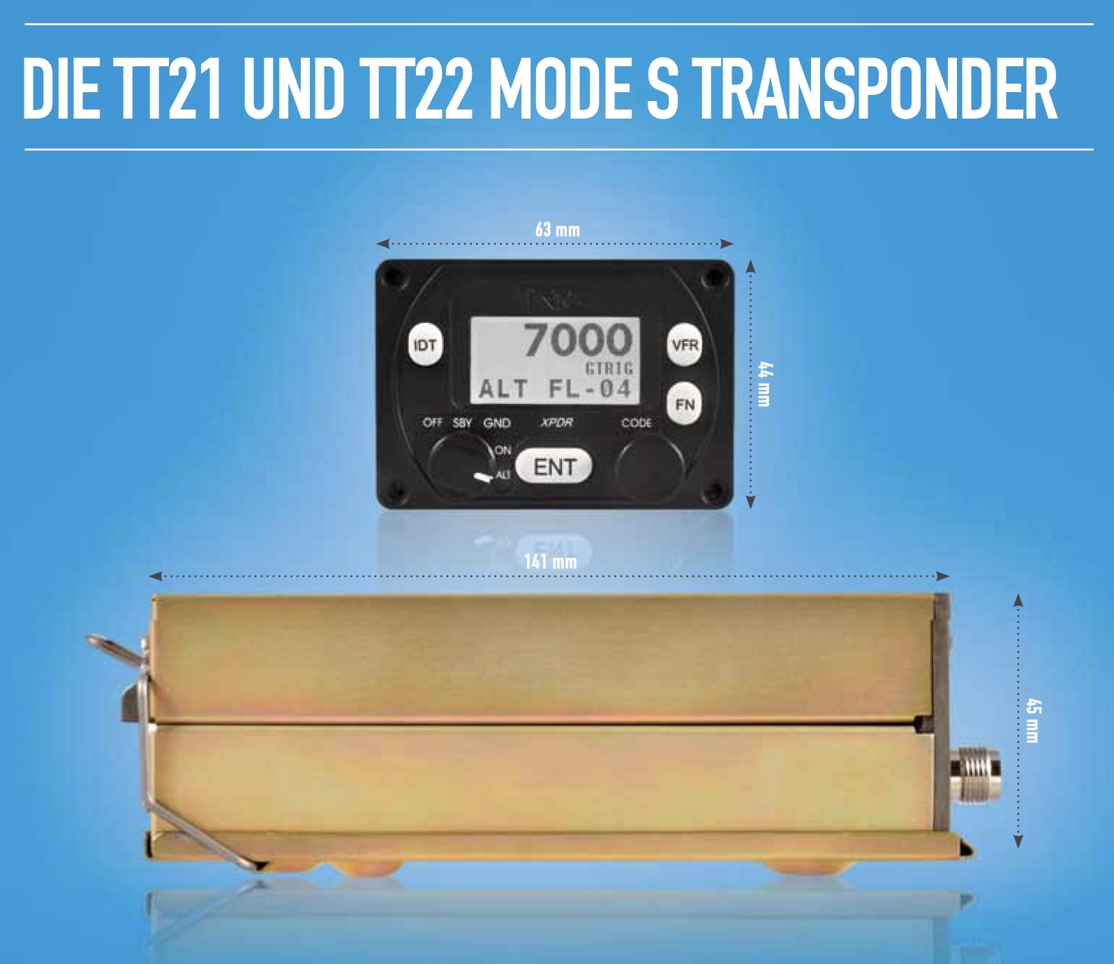 - Transponder TRIG TT21: Mode S mit separatem Control-Panel