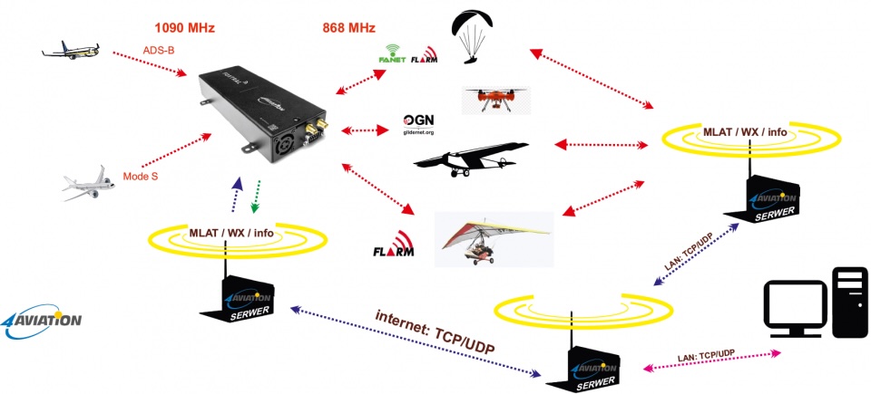 - Erkennt Flugzeuge mit Mode S, ADS-B und FLARM-Signalen.